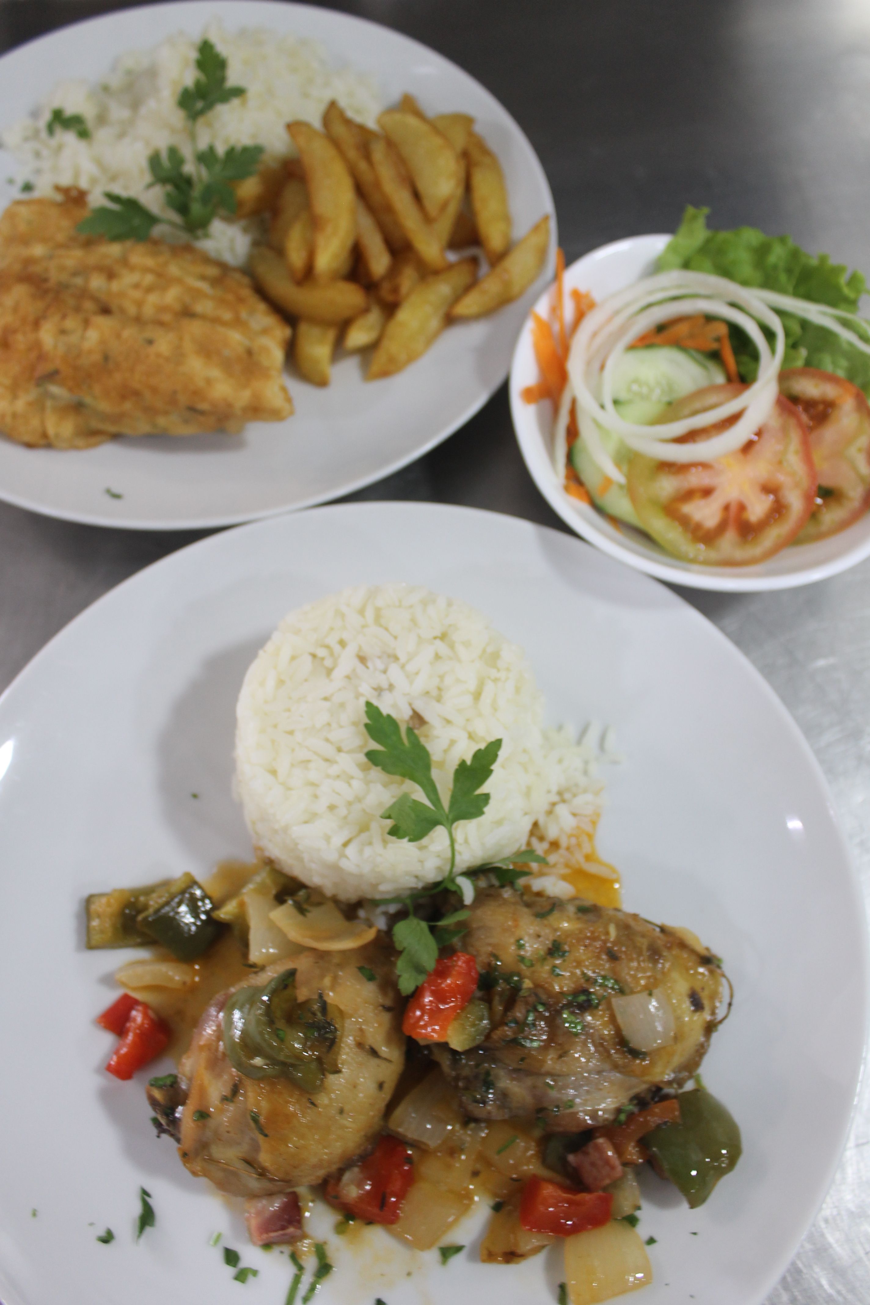 No nosso menu, irá encontrar muita variedade de sopas, saladas, pratos de peixe, pratos de carne, salgados, sobremesas e bebidas.